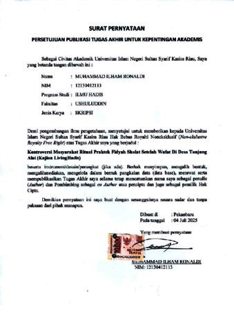 PERNYATAAN - MUHAMMAD ILHAM RONALDI Ilmu Hadis S1.pdf - Published Version