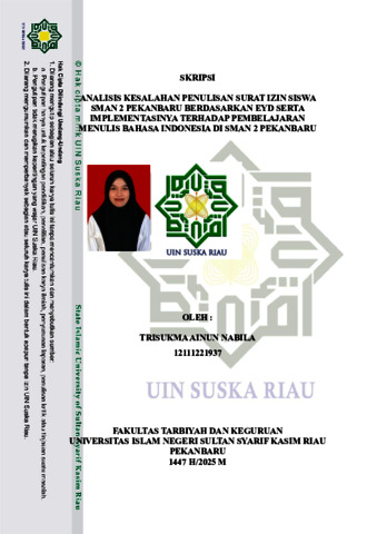 TRISUKMA AINUN NABILA, - (2025) ANALISIS KESALAHAN PENULISAN SURAT IZIN SISWA SMAN 2 PEKANBARU BERDASARKAN EYD SERTA IMPLEMENTASINYA TERHADAP PEMBELAJARAN MENULIS BAHASA INDONESIA DI SMAN 2 PEKANBARU. Skripsi thesis, UNIVERSITAS ISLAM NEGERI SULTAN SYARIF KASIM RIAU.