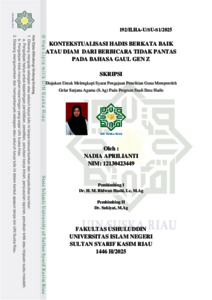 Skripsi ini berjudul ―Kontekstualisasi Hadis Berkata Baik atau Diam dari Berbicara Tidak Pantas pada Bahasa Gaul Gen Z.‖ Dalam interaksi sosial, menjaga lisan dan memilih ucapan yang baik merupakan prinsip penting dalam ajaran Islam. Namun, pada era digital saat ini, muncul penggunaan bahasa gaul yang begitu luas di kalangan Gen Z, mulai dari bahasa gaul yang positif dan kreatif hingga ungkapan yang kasar dan tidak pantas, baik dalam komunikasi langsung maupun melalui media sosial. Dalam situasi ini, penting untuk mengkontekstualisasikan nilai-nilai hadis tentang berkata baik atau diam, agar tetap relevan dan menjadi pedoman dalam berkomunikasi. Rumusan masalah dalam penelitian ini adalah: (1) Bagaimana status dan pemahaman hadis tentang berkata baik atau diam ? (2) Bagaimana kontekstualisasi hadis berkata baik atau diam dari berbicara tidak pantas pada bahasa gaul gen z ? Penelitian ini menggunakan jenis penelitian Kualitatif Deskriptif, sedangkan metode yang digunakan yaitu metode riset kepustakaan (Library Research) dan dengan pendekatan kualitatif. Teknik pengumpulan data dilakukan melalui takhrij hadis, penelusuran sanad dan matan hadis, serta mengkaji kitabkitab syarah dan literatur yang relevan. Sumber utama dalam penelitian ini adalah hadis Nabi Muhammad SAW tentang berkata baik atau diam dalam riwayat Abu Daud nomor 5154. Hasil penelitian menunjukkan: (1) Hadis tentang berkata baik atau diam yang diriwayatkan oleh Abu Daud nomor 5154 memiliki status marfu‘ karena bersumber langsung dari Rasulullah SAW. Dari segi kualitas, hadis ini termasuk shahih li zatihi Dari segi kuantitas, hadis ini merupakan hadis Muttawatir Lafdzi. Pemahaman terhadap hadis ini menunjukkan bahwa Islam memberikan pedoman yang jelas dalam menjaga lisan, yaitu dengan memilih ucapan yang baik, dan jika tidak mampu, maka diam lebih utama sebagai bentuk kehati-hatian dalam berbicara agar tidak menyakiti, merendahkan, atau menyebarkan keburukan kepada orang lain. (2) Kontekstualisasi hadis ini berarti mengaitkan pesan etis Rasulullah SAW dengan realitas komunikasi Gen Z, khususnya dalam penggunaan bahasa gaul. Yang perlu dikontekstualisasikan adalah ajaran untuk berbicara baik atau diam, agar menjadi pedoman moral dalam memilih kata, baik secara lisan maupun di media sosial.