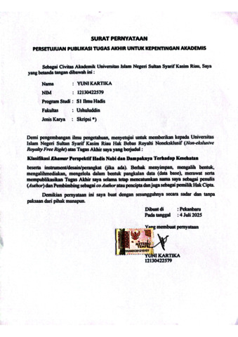 Surat publikasi yuni - YUNI KARTIKA Ilmu Hadis S1.pdf - Published Version Download (610kB) | Preview |