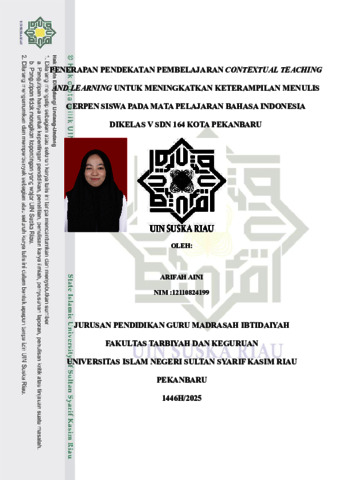 ARIFAH AINI, - (2025) PENERAPAN PENDEKATAN PEMBELAJARAN CONTEXTUAL TEACHING AND LEARNING UNTUK MENINGKATKAN KETERAMPILAN MENULIS CERPEN PADA MATA PELAJARAN BAHASA INDONESIA KELAS V SDN 164 KOTA PEKANBARU. Skripsi thesis, UNIVERSITAS ISLAM NEGERI SULTAN SYARIF KASIM RIAU.