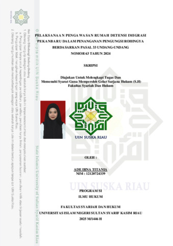 AÌDE IRNAÌ TITAÌNIAÌ, - (2025) PELAÌKSAÌNAÌAÌN PENGAÌWAÌSAÌN RUMAÌH DETENSI IMIGRASI PEKAÌNBAÌRU DAÌLAÌM PENANGANANÌ PENGUNGSI ROHINGYAÌ BERDAÌSAÌRKAÌN PASAL 33 UNDANG-UNDANG NOMOR 63 TAHUN 2024. Skripsi thesis, UNIVERSITAS ISLAM NEGERI SULTAN SYARIF KASIM RIAU.