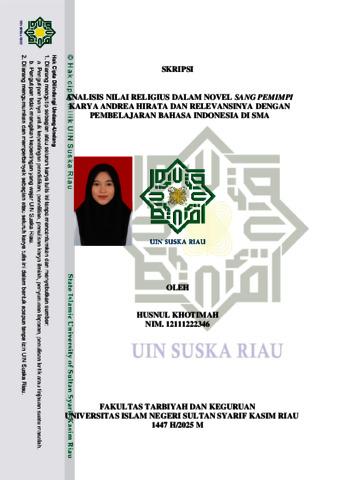 HUSNUL KHOTIMAH, - (2025) ANALISIS NILAI RELIGIUS DALAM NOVEL SANG PEMIMPI KARYA ANDREA HIRATA DAN RELEVANSINYA DENGAN PEMBELAJARAN BAHASA INDONESIA DI SMA. Skripsi thesis, UNIVERSITAS ISLAM NEGERI SULTAN SYARIF KASIM RIAU.