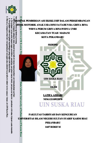 LATIFA AZHARI, - (2025) DAMPAK PEMBERIAN ASI EKSKLUSIF DALAM PERKEMBANGAN FISIK MOTORIK ANAK USIA DINI 5-6 TAHUN RA GRIYA BINA WIDYA PERUM GRIYA BINAWIDYA UNRI KECAMATAN TUAH MADANI KOTA PEKANBARU. Skripsi thesis, UNIVERSITAS ISLAM NEGERI SULTAN SYARIF KASIM RIAU.