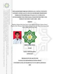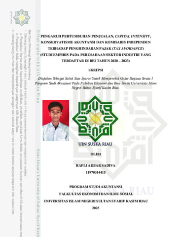 RAFLI AKBAR SADIVA, - (2025) PENGARUH PERTUMBUHAN PENJUALAN, CAPITAL INTENSITY, KONSERVATISME AKUNTANSI DAN KOMISARIS INDEPENDEN TERHADAP PENGHINDARAN PAJAK (TAX AVOIDANCE) (STUDI EMPIRIS PADA PERUSAHAAN SEKTOR INDUSTRI YANG TERDAFTAR DI BEI TAHUN 2020 – 2023). Skripsi thesis, UNIVERSITAS ISLAM NEGERI SULTAN SYARIF KASIM RIAU.