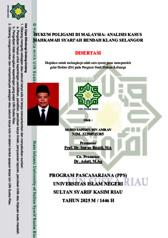 MOHD SAPIDIN BIN AMRAN, - (2025) HUKUM POLIGAMI DI MALAYSIA: ANALISIS KASUS MAHKAMAH SYARI’AH RENDAH KLANG SELANGOR. Disertasi thesis, UNIVERSITAS ISLAM NEGERI SULTAN SYARIF KASIM RIAU.