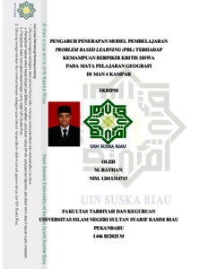 M. RAYHAN, - (2025) PENGARUH PENERAPAN MODEL PEMBELAJARAN PROBLEM BASED LEARNING (PBL) TERHADAP KEMAMPUAN BERPIKIR KRITIS SISWA PADA MATA PELAJARAN GEOGRAFI DI MAN 4 KAMPAR. Skripsi thesis, UNIVERSITAS ISLAM NEGERI SULTAN SYARIF KASIM RIAU.
