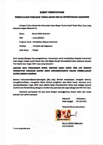 SURAT PERNYATAAN PUBLIKASI - Nurul Alifah Nahraini.pdf Download (356kB) | Preview |