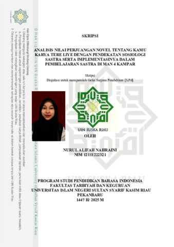 ABSTRAK Nurul Alifah Nahraini (2025) : Analisis Nilai Perjuangan Novel Tentang Kamu Karya Tere Liye Dengan Pendekatan Sosiologi Sastra Serta Implementasinya Dalam Pembelajaran Sastra Di Madrasah Aliyah. Penelitian ini dilatarbelakangi oleh adanya permasalahan rendahnya nilai perjuangan serta motivasi belajar peserta didik dalam pembelajaran sastra di sekolah, khususnya di tingkat Aliyah. Dalam konteks ini, karya sastra dapat menjadi media yang efektif untuk menanamkan nilai-nilai kehidupan. Salah satu karya yang relevan adalah novel Tentang Kamu karya Tere Liye yang mengandung berbagai nilai perjuangan hidup melalui tokoh utamanya, Sri Ningsih. Nilai- nilai seperti rela berkorban, persatuan, saling menghargai, nilai sabar, nilai semangat pantang menyerah, dan nilai kerja sama tercermin kuat dalam perjalanan hidup tokoh tersebut. Penelitian ini bertujuan untuk menganalisis nilai-nilai perjuangan dalam novel Tentang Kamu karya dengan pendekatan sosiologi sastra dan implementasinya dalam pembelajaran sastra di Madrasah Aliyah Negeri 4 Kampar. Metode yang digunakan dalam penelitian ini adalah deskriptif kualitatif dengan teknik pengumpulan data melalui studi pustaka dan analisis isi. Hasil penelitian mengenai nilai perjuangan ini ditemukan 29 data, di antaranya nilai rela berkorban 6 data, nilai persatuan 4 data, nilai saling menghargai 4 data, nilai sabar 6 data, nilai semangat pantang menyerah 6 data, dan nilai kerja sama 3 data. Selain itu implementasi dalam penelitian ini pada pembelajran sastra di MAN yaitu dapat dijadikan bahan ajar sesuai dengan silabus kelas XII pada KD 4.7 yaitu isi dalam buku fiksi dan nonfiksi dengan materi amanat yang terkandung dalam novel. Kata kunci : Nilai Perjuangan, sosiologi sastra, implementasi.