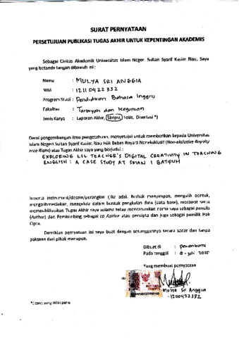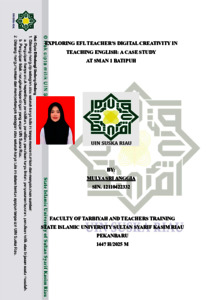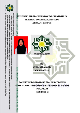 MULYA SRI ANGGIA, - (2025) EXPLORING EFL TEACHER’S DIGITAL CREATIVITY IN TEACHING ENGLISH: A CASE STUDY AT SMAN 1 BATIPUH. Skripsi thesis, UNIVERSITAS ISLAM NEGERI SULTAN SYARIF KASIM.
