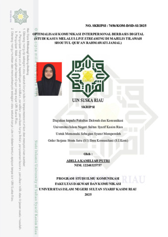 ADILLA KAMILIAH PUTRI, - (2025) OPTIMALISASI KOMUNIKASI INTERPERSONAL BERBASIS DIGITAL (STUDI KASUS MELALUI LIVE STREAMING DI MAJELIS TILAWAH SHOUTUL QUR’AN RAHMAWATI JAMAL). Skripsi thesis, UNIVERSITAS ISLAM NEGERI SULTAN SYARIF KASIM RIAU.