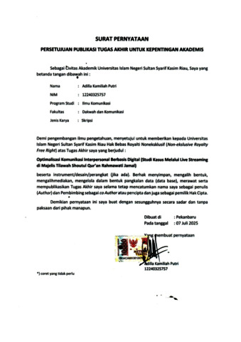 PERNYTAAN PUBLIKASI - ADILLA KAMILIAH PUTRI ILMU KOMUNIKASI.pdf - Published Version