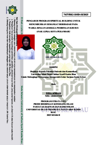 WINA APRIANI, - (2025) PENGARUH PROGRAM SPIRITUAL BUILDING UNTUK MENUMBUHKAN SEMANGAT BERIBADAH PADA WARGA BINAAN LEMBAGA PEMBINAAN KHUSUS ANAK (LPKA) KOTA PEKANBARU. Skripsi thesis, UNIVERSITAS ISLAM NEGERI SULTAN SYARIF KASIM RIAU.