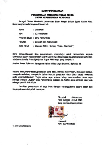 SURAT PERNYATAAN PERSETUJUAN PUBLIKASI - LISNAWATI ILMU KOMUNIKASI.pdf - Published Version