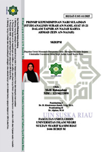 MELFI RAHMADANI, - (2025) PRINSIP KEPEMIMPINAN NABI SULAIMAN (STUDI ANALISIS SURAH AN-NAML AYAT 15-21 DALAM TAFSIR AN NAJAH KARYA AHMAD ZEIN AN-NAJAH). Skripsi thesis, UNIVERSITAS ISLAM NEGERI SULTAN SYARIF KASIM RIAU.
