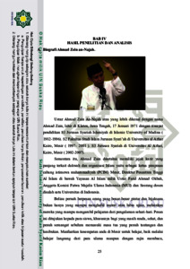 ABSTRAK Skripsi ini berjudul Prinsip Kepemimpin Nabi Sulaiman (studi analisi surah An- Naml ayat 15-21 dalam tafsir An-Najah karya Ahmad Zein An-Najah) kepemimpinan Sulaiman ini merupakan salah satu kisah yang banyak terdapat pelajaran dan bisa di ambil oleh pemimpin setelahnya dangan gaya kepemimpinan. Sulaiman yang cerdas, tegas, cerdik dan disiplin. Semuanya diterangkan dalam QS. An naml [27] ayat 15-40. Nabi Sulaiman merupakan nabi dan raja yang tidak menjadikan kekayaan sebagai prioritas meskipun ia mempunyai kekuasaan yang sempurna, tetapi memimpin sesuia dengan aturan Allah. kisah kisah dalam alquran tentu tidsak terlepas dari peringat dan pelajaran, sehingga perlu bagi setiap kalangan untuk meneladani apa yang diajarkan didalam al quran, salah satunya meneladani sikap kepemimpinan Nabi Sulaiman dan data yang penulis ambil adalah salah satunya dari sebuah buku yang perjudul menang tanpa perang, yang mana buku ini adalh karya tulis dari Ahmad Zein an-Najah yang menafsirkan surath an- Naml pada tafsir An-Najah, kemudian dari jurnal jurnal yang membahas tentang bagaimana kepemimpinan Sulaiman, Penelitian ini merupakan penelitian kualitatif berdasarkan data-data kepustakaan yang dihimpun menggunakan metode tematik dengan menggunakan tafsir An-Najah sebagar rujukan utamanya. Dapat di simpulkan Dalam analisis surat an-Naml ayat 15 sampai 21 menjelaskan tentang konsep konsep kepemimpinan yang dilakukan Nabi Sulaiman dan dari hasil analisis yang telah penulis teliti pada ayat 15dan 16 ilmu adalah tonggak utama bagi seorang pemimpin, pada ayat 17 menyimpulakn bahwa sebuah teknik militier atau mengumpulkan teknik militer, pada ayat 18 dan 19 konsep kepemimpinan yang dapat diambil dan dicontoh adalah bagaimana kepemimpinan semut, dari segi dialog, kekompakan dan lainnya, pada analisis ayat 20 dan 21 konsep kepemimpinan yang dapat diambil adalah sebuah kepemimpinan yang merakya, seperti mendengarkan asprasi dari bawahan atau menegakkan ketegasan kepada bawahannya jika mereka berbuat salah. Kata Kunci : Prinsip Kepemimpinan, Nabi Sulaiman, Surat an-Naml, An Najah