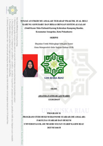 Amanda Fatimah Azuwardi, 2025: Tinjauan Fikih Muamalah Tehadap Praktik Jual Beli Karung Goni Baru Dan Bekas Dengan Sistem Al-Salam Penelitian ini dilatar belakangi, praktik jual beli karung goni baru dan bekas dengan sistem Al-Salam, di Toko Fatimah Karung Kelurahan Kampung Bandar, Kecamatan Senapelan, Kota Pekanbaru. Sistem Salam merupakan akad jual beli dimana pembayaran dilakukan di awal, sementara barang diserahkan kemudian pada waktu yang telah disepakati. Berdasarkan pernyataan tersebut, peneliti ingin mengetahui bagaimana praktik jual beli karung goni baru dan bekas dengan sistem Al-Salam di Toko Fatimah Karung Kelurahan Kampung Bandar, Kecamatan Senapelan, Kota Pekanbaru. Rumusan masalah penelitian ini adalah bagaimana sistem jual beli karung goni baru dan bekas di toko fatimah karung secara Salam, dan bagaimana tinjauan fiqih muamalah terhadap jual beli karung goni baru dan bekas di toko fatimah karung dengan metode Salam. Sedangkan tujuan dari penelitian ini adalah untuk mengetahui dan memahami bagaiaman tinjauan fiqih muamalah terhadap akad Salam di toko fatimah karung. Penelitian ini menggunakan metode kualitatif dengan pendekatan deskriptif. Data dikumpulkan melalui wawancara, observasi, dan dokumentasi dengan 4 responden, yang terdiri dari pemilik toko dan pembeli. Berdasarkan hasil penelitian dilapangan, adapun mekanisme dalam praktik jual beli karung goni be.kas dan baru ialah : Pesanan biasanya dilakukan dengan sistem pre-order atau berdasarkan pe.rmintaan pelanggan, Pembeli mengajukan permintaan karung goni dengan spesifikasi tertentu (ukuran, jumblah, kondisi baru atau bekas), kemudian penjual dan pembeli menyepakati harga, jenis karung (baru/bekas), dan kualitas, kemudian pembayaran bisa dilakukan secara tunai, DP (uang muka), atau tempo, tergantung kesepakatan. Ditinjau menurut hukum fiqih muamalah bahwa transaksi ini diperbolehkan karena memenuhi rukun dan syarat jual beli, dan tidak terdapat hal hal yang bertentangan dengan Syariah. Kata Kunci: Al-Salam, Fiqih Muamalah, Jual Beli Karung Goni Baru dan Bekas