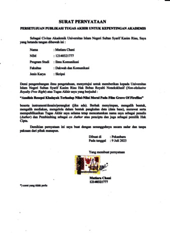 MUTIARA CHANI, - (2025) ANALISIS RESEPSI KHALAYAK TERHADAP NILAI-NILAI MORAL PADA FILM GRAVE OF FIREFLIES. Skripsi thesis, UNIVERSITAS ISLAM NEGERI SULTAN SYARIF KASIM RIAU.
