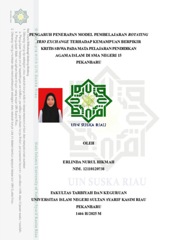 PENGARUH PENERAPAN MODEL PEMBELAJARAN ROTATING TRIO EXCHANGE TERHADAP KEMAMPUAN BERPIKIR KRITIS SISWA PADA MATA PELAJARAN PENDIDIKAN AGAMA ISLAM DI SMA NEGERI 15 PEKANBARU