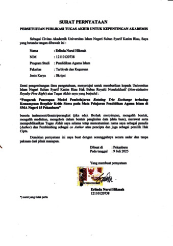 SURAT PERNYATAAN - ERLINDA NURUL HIKMAH PENDIDIKAN AGAMA ISLAM.pdf - Published Version