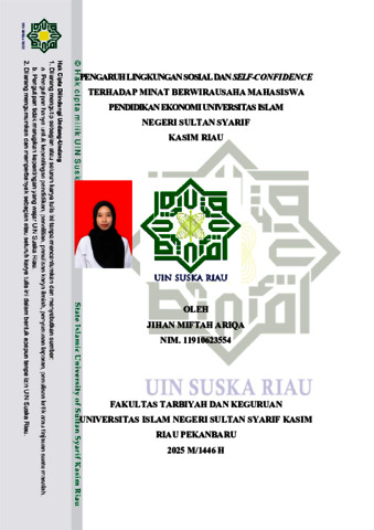 JIHAN MIFTAH ARIQA, - (2025) PENGARUH LINGKUNGAN SOSIAL DAN SELF-CONFIDENCE TERHADAP MINAT BERWIRAUSAHA MAHASISWA PENDIDIKAN EKONOMIUNIVERSITAS ISLAM NEGERI SULTAN SYARIF KASIM RIAU. Skripsi thesis, UNIVERSITAS ISLAM NEGERI SULTAN SYARIF KASIM RIAU.