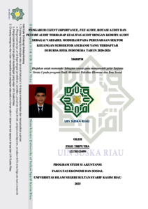 FIGO TRIPUTRA, - (2025) PENGARUH CLIENT IMPORTANCE, FEE AUDIT, ROTASI AUDIT DAN TENURE AUDIT TERHADAP KUALITAS AUDIT DENGAN KOMITE AUDIT SEBAGAI VARIABEL MODERASI PADA PERUSAHAAN SEKTOR KEUANGAN SUBSEKTOR ASURANSI YANG TERDAFTAR DI BURSA EFEK INDONESIA TAHUN 2020-2024. Skripsi thesis, UNIVERSITAS ISLAM NEGERI SULTAN SYARIF KASIM RIAU.