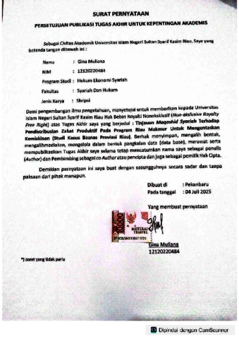GINA MULIANA, - (2025) TINJAUAN MAQASHID SYARIAH TERHADAP PENDISTRIBUSIAN ZAKAT PRODUKTIF PADA PROGRAM RIAU MAKMUR UNTUK MENGENTASKAN KEMISKINAN (Studi Kasus Baznas Provinsi Riau). Skripsi thesis, UIN SUSKA.