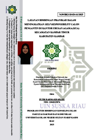 PUTRI RAHMA KHAIRANI, - (2025) LAYANAN BIMBINGAN PRANIKAH DALAM MENINGKATKAN SELF RESPONSIBILITY CALON PENGANTIN DI KANTOR URUSAN AGAMA (KUA) KECAMATAN KAMPAR TIMUR KABUPATEN KAMPAR. Skripsi thesis, Universitas Islam Negeri Sultan Syarif Kasim Riau.