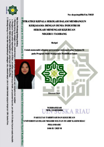 NURHAFIZAH, - (2025) STRATEGI KEPALA SEKOLAH DALAM MEMBANGUN KERJASAMA DENGAN DUNIA INDUSTRI DI SEKOLAH MENENGAH KEJURUAN NEGERI 1 TAMBANG. Skripsi thesis, UNIVERSITAS ISLAM NEGERI SULTAN SYARIF KASIM RIAU.