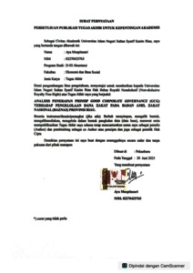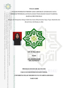 AYU MUSPITASARI, - (2025) ANALISIS PENERAPAN PRINSIP GOOD CORPORATE GOVERNANCE (GCG) TERHADAP PENGELOLAAN DANA ZAKAT PADA BADAN ZAKAT NASIONAL (BAZNAS) PROVINSI RIAU. Laporan thesis, UNIVERSITAS ISLAM NEGERI SULTAN SYARIF KASIM RIAU.