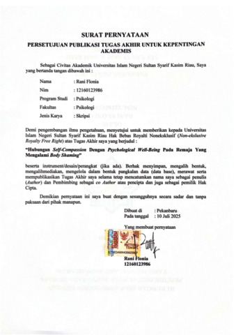 RANI FLONIA, - (2025) HUBUNGAN SELF-COMPASSION DENGAN PSYCHOLOGICAL WELL-BEING PADA REMAJA YANG MENGALAMI BODY SHAMING. Skripsi thesis, UNIVERSITAS ISLAM NEGERI SULTAN SYARIF KASIM RIAU.