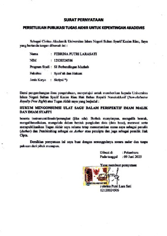 FEBRINA PUTRI LARA SATI, - (2025) HUKUM MENGONSUMSI ULAT SAGU DALAM PERSPEKTIF IMAM MALIK DAN IMAM SYAFI’I. Skripsi thesis, UNIVERSITAS ISLAM NEGERI SULTAN SYARIF KASIM RIAU.