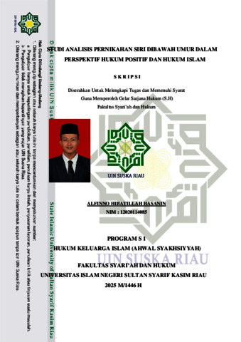 ALFINNO HIBATILLAH HASANIN, - (2025) STUDI ANALISIS PERNIKAHAN SIRI DIBAWAH UMUR DALAM PERSPEKTIF HUKUM POSITIF DAN HUKUM ISLAM. Skripsi thesis, UNIVERSITAS ISLAM NEGERI SULTAN SYARIF KASIM RIAU.