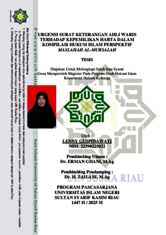 ABSTRAK Tesis ini berjudul: URGENSI SURAT KETERANGAN AHLI WARIS TERHADAP KEPEMILIKAN HARTA DALAM KOMPILASI HUKUM ISLAM PERSPEKTIF MASLAHAH AL-MURSALAH, dengan rumusan masalah : (1) Bagaimana fungsi Surat Keterangan Ahli Waris terhadap kepemilikan harta dalam Kompilasi Hukum Islam ? dan (2) Bagaimana tinjauan Mashlahah al-Mursalah terhadap fungsi Surat Keterangan Ahli Waris dalam kepemilikan harta menurut Kompilasi Hukum Islam? Metode penelitian : penelitian pustaka (Library Research) dengan pendekatan kualitatif. Sumber data primer: Kompilasi Hukum Islam, Permen Agraria dan Tata Ruang/Kepala Badan Pertanahan Nasional Nomor 16 Tahun 2021, Permenkumham Nomor 7 Tahun 2021 dan Buku Mashlalah al-Mursalah. Sumber data skunder: karya-karya dari kalangan hukum dan sebagainya, sumber data tertier: Ensiklopedia, Kamus dan lain-lain. Teknik analisis data : deduktif, induktif dan komperatif. Hasil penelitian: (1) Fungsi Surat Keterangan Ahli Waris terhadap kepemilikan harta dalam Kompilasi Hukum Islam : bagi setiap warga Negara Indonesia hal ihwal waris mewarisi terkait dengan peristiwa hukum dan kepastian hokum, termasuk dalam hal Surat Keterangan Ahli Waris berdasarkan Peraturan Menteri Agraria dan Tata Ruang/ Kepala Badan Pertanahan Nasional Nomor 16 Tahun 2021 dan Permenkumham Nomor 7 Tahun 2021 Tentang Organisasi dan Tata Kerja Balai Harta Peninggalan, Surat Keterangan Ahli Waris adalah dokumen resmi yang memuat identitas ahli waris yang berhak menerima harta peninggalan dari seseorang yang telah meninggal dunia dan menjadi bukti bahwa seseorang atau beberapa orang memiliki hak waris atas harta peninggalan seseorang yang telah meninggal dunia. Ahli waris menurut Kompilasi Hukum Islam adalah orangorang yang menggantikan pewaris dalam kedudukannya terhadap harta peninggalan (tirkah/ warisan), baik untuk seluruhnya maupun sebagian,” berdasarkan hubungan darah, perkawinan, beragama Islam, dan tidak ada halangan secara hukum menjadi ahli waris., dan (2)Tinjauan Mashlahah al- Mursalah terhadap kedudukan dan fungsi Surat Keterangan Ahli Waris: memenuhi 4 persyaratan Mashlahah al-Mursalah: (a)kemaslahatan yang dimaksudkan ingin dicapai tidak bertentangan dengan nash/ dalil al-Qur‟an dan Hadis, (b) Kemaslahatan yang dimaksud setidaknya merupakan salah satu dari maqashid al-syari‟ah/ al-Kulliyât al-Khams (Hifzh : al-Din, al-Nafs, al-Aql, al- Nasl, al-Maal), (c)Kemaslahatan yang dimaksud mesti merupakan sesuatu yang nyata demi mendatangkan kemaslahatan, menghindarkan dari kemudaratan, (d)Kemaslahatan itu mesti nyata terjadi berlaku secara umum yang manfaatnya itu berdampak pada banyak orang atau kemudaratan yang hendak dihindarkan itu dari orang banyak bukan dari pribadi seseorang. Keyword : Urgensi, Surat Keterangan Ahli Waris dan Mashlahah.