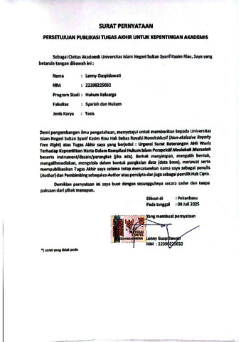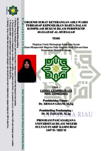LENNY GUSPIDAWATI, - (2025) URGENSI SURAT KETERANGAN AHLI WARIS TERHADAP KEPEMILIKAN HARTA DALAM KOMPILASI HUKUM ISLAM PERSPEKTIF MASLAHAH AL-MURSALAH. Thesis thesis, UNIVERSITAS ISLAM NEGERI SULTAN SYARIF KASIM RIAU.