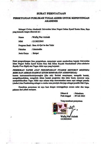 SURAT PUBLIKASI WAFIQ - WAFIQ NUR AZIZAH Ilmu Alquran dan Tafsir S1.pdf - Published Version Download (521kB) | Preview |