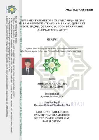 MHD. SANDI SAPUTRA (2025) IMPLEMENTASI METODE TAHFIDZ MUQATHTHA’ DALAM MENINGKATKAN HAFALAN AL-QURAN DI SD EL-HAQQA QURANIC SCHOOL PEKANBARU (STUDI LIVING QUR’AN). Skripsi thesis, UNIVERSITAS ISLAM NEGERI SULTAN SYARIF KASIM RIAU.