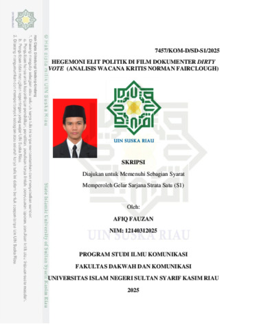 AFIQ FAUZAN, - (2025) HEGEMONI ELIT POLITIK DI FILM DOKUMENTER DIRTY VOTE (ANALISIS WACANA KRITIS NORMAN FAIRCLOUGH). Skripsi thesis, UNIVERSITAS ISLAM NEGERI SULTAN SYARIF KASIM RIAU.