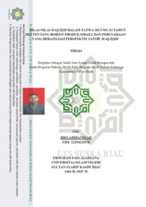 RIKI ARDIANSYAH, - (2025) NILAI-NILAI MAQĀṢID DALAM FATWA MUI NO. 83 TAHUN 2023 TENTANG BOIKOT PRODUK ISRAEL DAN PERUSAHAAN YANG BERAFILIASI PERSPEKTIF TAFSĪR MAQĀṢIDI. Thesis thesis, UNIVERSITAS ISLAM NEGERI SULTAN SYARIF KASIM RIAU.