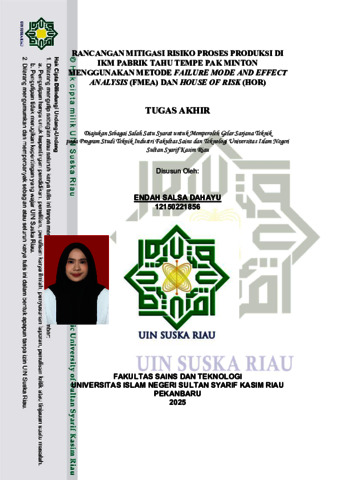 ENDAH SALSA DAHAYU, - (2025) RANCANGAN MITIGASI RISIKO PROSES PRODUKSI DI IKM PABRIK TAHU TEMPE PAK MINTON MENGGUNAKAN METODE FAILURE MODE AND EFFECT ANALYSIS (FMEA) DAN HOUSE OF RISK (HOR). Skripsi thesis, UNIVERSITAS ISLAM NEGERI SULTAN SYARIF KASIM.