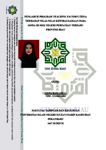 LISTA RAMADELI, - (2025) PENGARUH PROGRAM TEACHING FACTORY (TEFA) TERHADAP NILAI-NILAI KEWIRAUSAHAAN PADA SISWA DI SMK NEGERI PERTANIAN TERPADU PROVINSI RIAU. Skripsi thesis, UIN SUSKA.