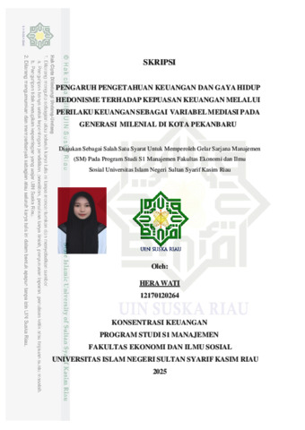 HERA WATI, - (2025) PENGARUH PENGETAHUAN KEUANGAN DAN GAYA HIDUP HEDONISME TERHADAP KEPUASAN KEUANGAN MELALUI PERILAKU KEUANGAN SEBAGAI VARIABEL MEDIASI PADA GENERASI MILENIAL DI KOTA PEKANBARU. Skripsi thesis, UNIVERSITAS ISLAM NEGERI SULTAN SYARIF KASIM RIAU.