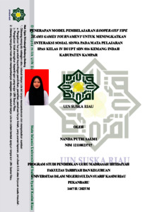 ABSTRAK Nanda Putri Salmi, (2025): Penerapan Model Pembelajaran Kooperatif tipe Teams Games Tournamen untuk Meningkatkan Interaksi Sosial Siswa pada Mata Pelajaran IPAS di Kelas IV UPT SDN 016 Kemang Indah Kbupaten Kampar. Penelitian ini bertujuan untuk meningkatkan interaksi sosial siswa melalui penerapan model pembelajaran teams games tournament pada mata pelajaran Ilmu Pengetahuan Alam dan Sosial di kelas IV UPT SDN 016 Kemang Indah Kabupaten Kampar. Penelitian ini merupakan penelitian tindakan kelas yang dilaksanakan dalam dua siklus. Setiap siklus terdiri dari perencanaan, pelaksanaan, observasi, dan refleksi. Hasil penelitian menunjukkan adanya peningkatan interaksi sosial siswa dari sebelum tindakan sebesar 46,66 termasuk kategori kurang, meningkat menjadi 50,83 pada siklus I termasuk kategori kurang, lalu meningkat menjadi 82,5 pada pertemuan pertama siklus II termasuk kategori cukup baik, dan mencapai 89,16 pada pertemuan kedua siklus II termasuk kategori baik. Berdasarkan hasil tersebut, dapat disimpulkan bahwa penerapan model pembelajaran teams games tournament dapat meningkatkan interaksi sosial siswa pada mata pelajaran IPAS di kelas IV UPT SDN 016 Kemang Indah Kabupaten Kampar. Kata Kunci: Teams Games Tournament, interaksi sosial, IPAS