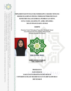 VERRA DUMA UTARI. M, - (2025) IMPLEMENTASI PUTUSAN MK NOMOR 2/PUU-XIX/2021 TENTANG EKSEKUSI JAMINAN FIDUSIA TERHADAP PERLINDUNGAN KONSUMEN DALAM LEMBAGA PEMBIAYAAN SEWA GUNA USAHA (LEASING) PT. ADIRA DINAMIKA MULTI FINANCE KOTA DUMAI. Skripsi thesis, UNIVERSITAS ISLAM NEGERI SULTAN SYARIF KASIM RIAU.