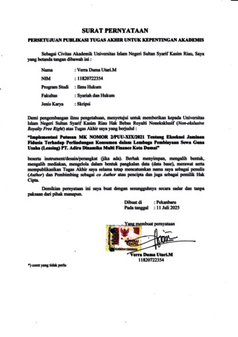 SURAT PERNYATAAN - VERRA DUMA UTARI.M ILMU HUKUM.pdf - Published Version Download (353kB) | Preview |
