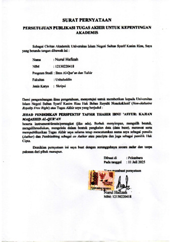 NURUL HAFIZAH, - (2025) JIHAD PENDIDIKAN PERSPEKTIF TAFSIR THAHIR IBNU ‘ASYUR : KAJIAN MAQASHID AL-QUR’AN. Skripsi thesis, Universitas Islam Negeri Sultan Syarif Kasim Riau.