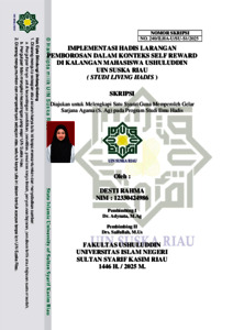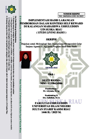 DESTI RAHMA, - (2025) IMPLEMENTASI HADIS LARANGAN PEMBOROSAN DALAM KONTEKS SELF REWARD DI KALANGAN MAHASISWA USHULUDDIN UIN SUSKA RIAU ( STUDI LIVING HADIS ). Skripsi thesis, Universitas Islam Negeri Sultan Syarif Kasim Riau.