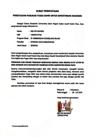 PENGARUH JUDI ONLINE TERHADAP KESEHATAN MENTAL PADA REMAJA DI RT 19 RW 05 DESA BANGUN JAYA KECAMATAN TAMBUSAI UTARA KABUPATEN ROKAN HULU