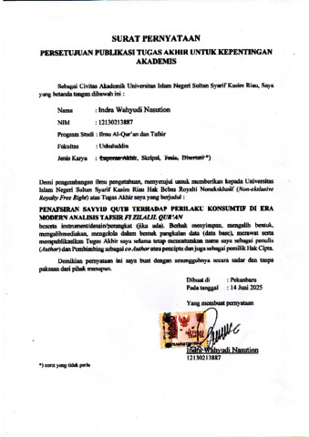 INDRA WAHYUDI NASUTION, - (2025) PENAFSIRAN SAYYID QUTB TERHADAP PERILAKU KONSUMTIF DI ERA MODERN (ANALISIS TAFSIR FI ZILALIL QUR’AN ). Skripsi thesis, Universitas Islam Negeri Sultan Syarif Kasim Riau.