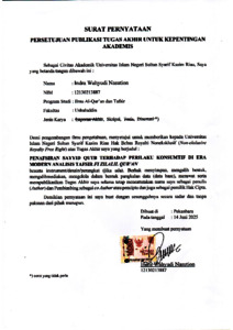 SURAT PUBLIKASI INDRA - INDRA WAHYUDI NASUTION Ilmu Alquran dan Tafsir S1.pdf - Published Version Download (362kB) | Preview |